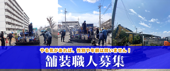 三幸地建では舗装職人を募集しております。やる気があれば、性別や年齢は問いません!